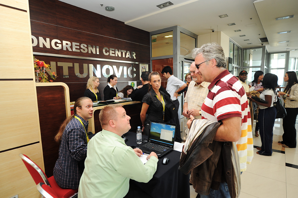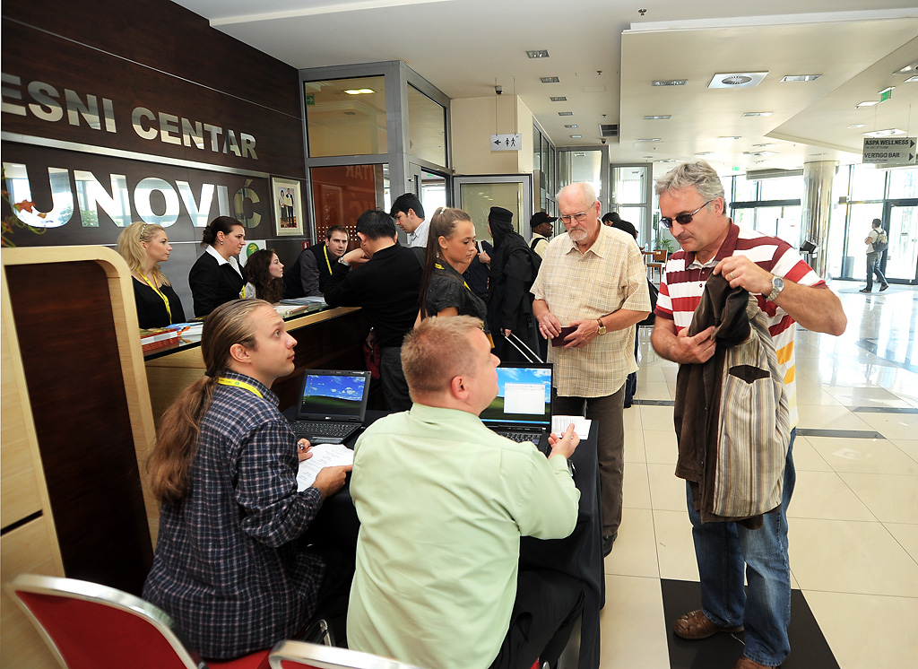 Registracija u kongresnom centru hotela Antunović. Tin Požegić i ostali članovi tima dočekuju znanstvenike sa svih strana svijeta.