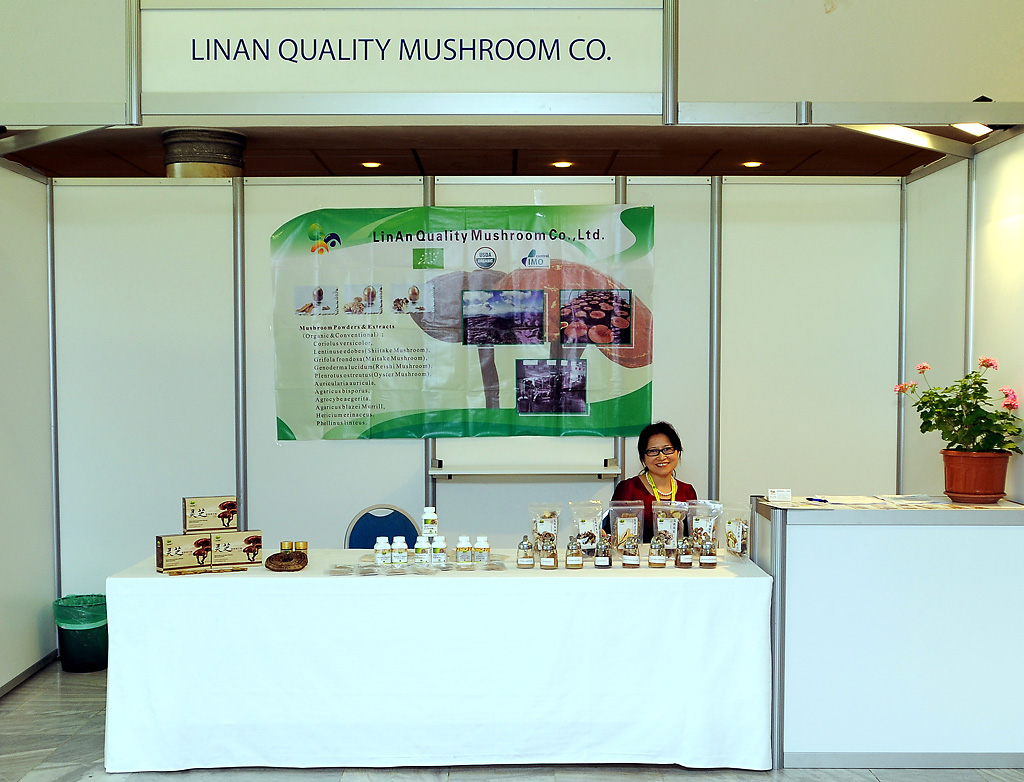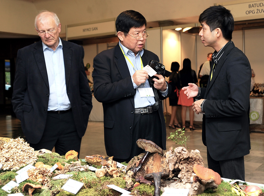 Na štandu firme LinAn Quality Mushroom: dr. Ming Chen (Danska), dr. Henrik Hoff-Hansen (Danska). U drugom planu razgovaraju prof. S. Wasser i X. Wang.